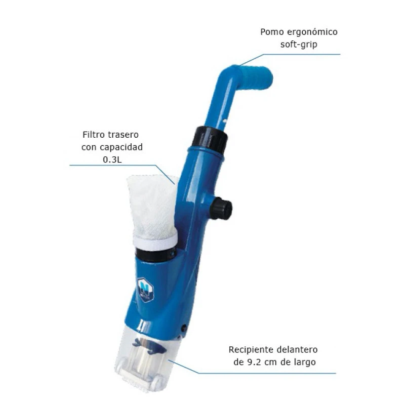 Está especialmente diseñado para spas o piscinas elevadas de tamaño reducido. Es un modelo compacto y elegante, capaz de aspirar las más mínimas impurezas y restos de suciedad en el fondo de su spa.