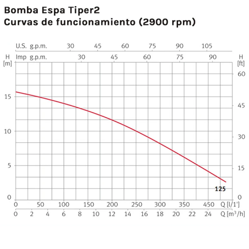 – Bomba Espa Tiper2 125 – Monofásica – Potencia de 1,25 cv – hasta 70 m3*