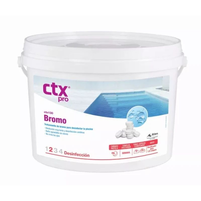 El bromo en tabletas de 20 g CTX-130 de disolución lenta para la desinfección de piscinas y spas. Cumple con una serie de ventajas que hacen que el bromo sea una buena alternativa al cloro.