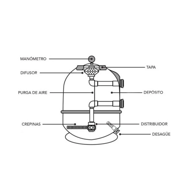 Incluye bomba autoaspirante, filtro láminado, válvula selectora y conexionado.