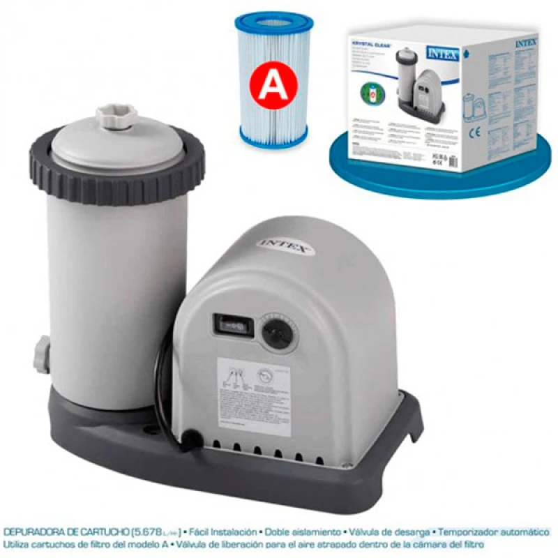 Sistema de filtración fabricado en PVC ultra resistente, diseñado y fabricado por INTEX, empresa número uno mundial en fabricación de piscinas y accesorios para estas. La depuradora es uno de los componentes más importantes para una piscina, ya uqe es la encargada de darle al agua ese tono cristalino que tanto nos gusta.