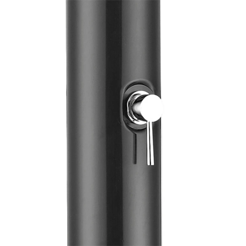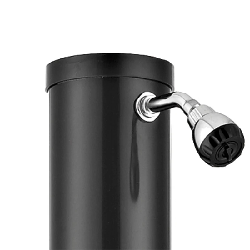 Ducha Solar ecológica de elegante diseño y color negro brillante, fabricada en PVC, es ideal para la instalación cerca de la piscina o zona de jardín. Calienta el agua mediante la radiación solar y es capaz de acumular hasta 38 litros de agua caliente en el depósito incorporado en su interior.