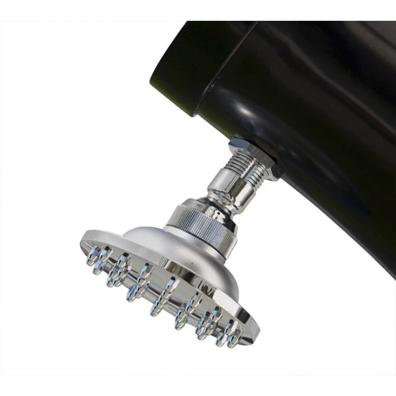 El depósito del agua está integrado en el interior de la ducha solar, de forma que cuando abres el grifo sale el agua caliente instantáneamente, sin tener que esperar con el grifo abierto y sin desperdiciar ni una gota de agua.