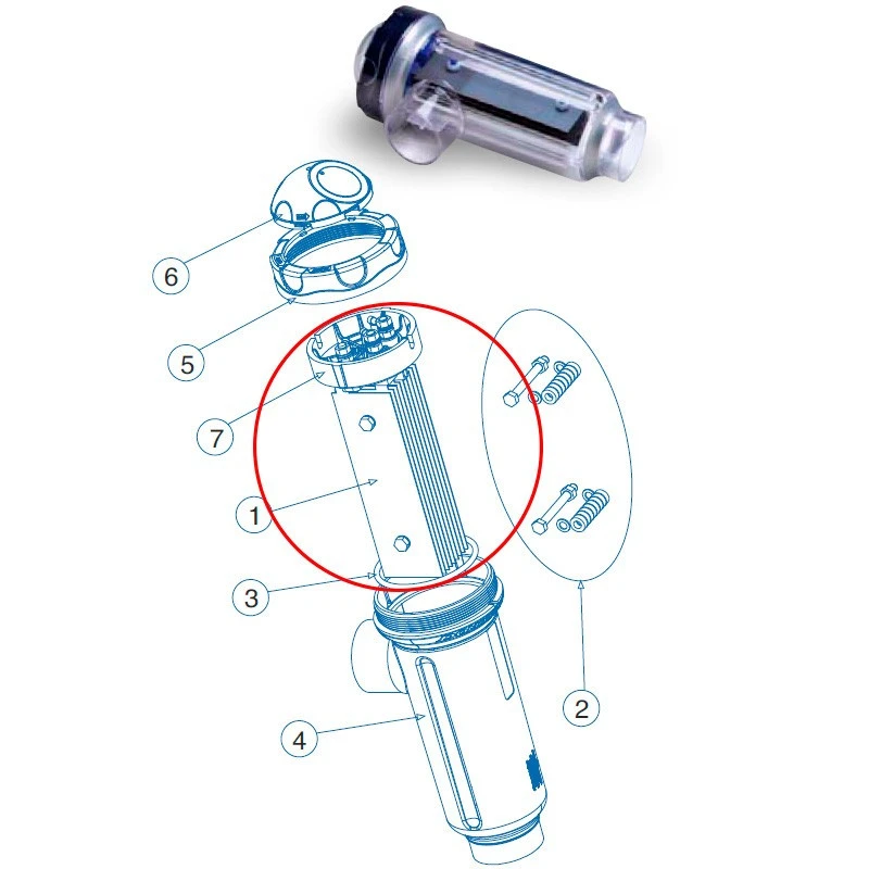 El electrodo permite que circule la corriente eléctrica en el interior de la célula y, por tanto, provocar la descomposición de la sal en sodio y cloro. De esta manera se obtiene cloro como desinfectante natural del agua. La cloración salina favorece el uso de un producto natural y sustituye los desinfectante químicos que pueden perjudicar a los bañistas.