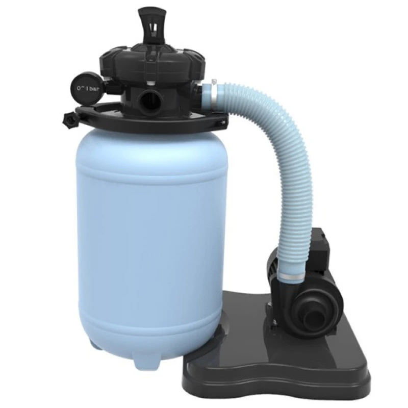 Amplia gama de depuradoras de arena equipadas y montados con su correspondiente bomba de aspiración para la depuración del agua de piscinas desmontables.