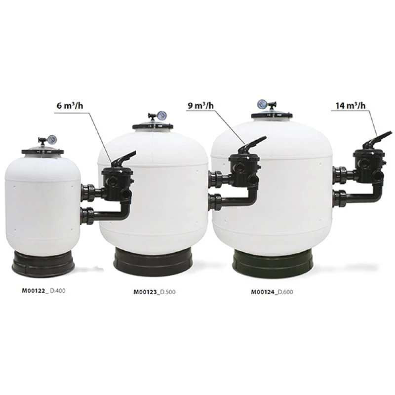 Está disponible en 3 diámetros diferentes: Ø 400, Ø 500 y Ø 600 mm, que presentan diferentes características y capacidades de filtración. Escoja el modelo más adecuado para su piscina consultando la tabla de modelos al final de esta página.