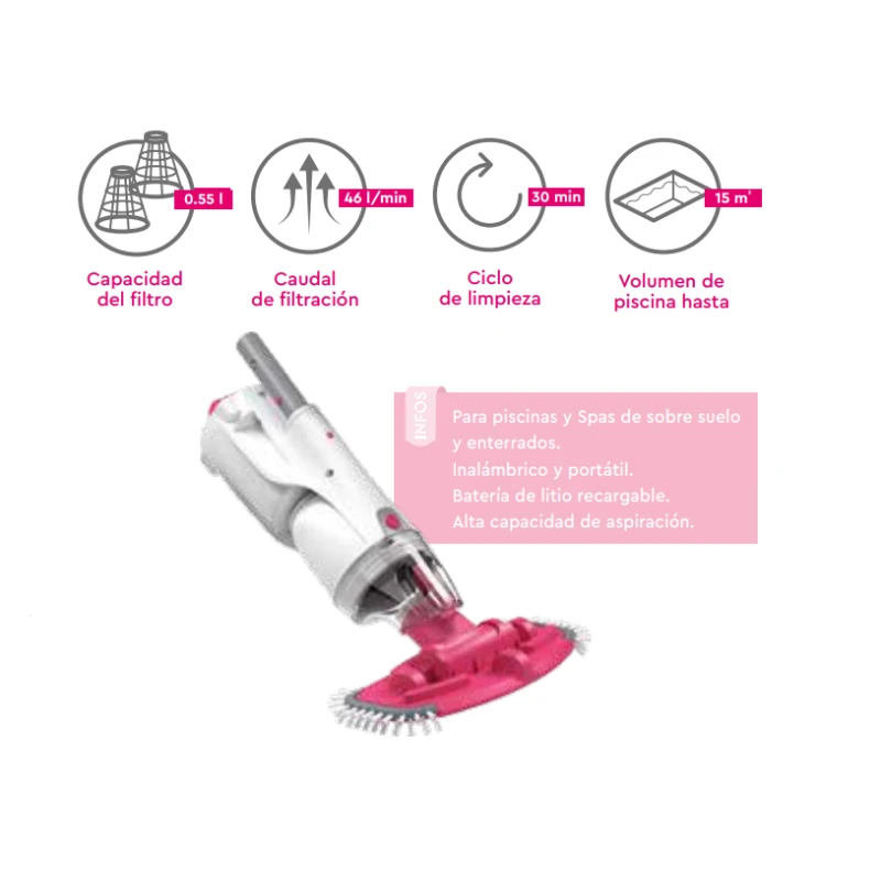 Cabezal de aspiración giratorio. Cepillo limpieza esquinas incluido.