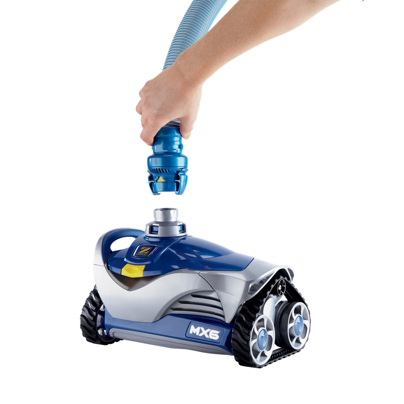 El limpiafondos de la gama Zodiac MX6 es un limpiafondos hidráulico ideal para piscinas elevadas y enterradas con medidas hasta 10 x 5 metros. El robot hidráulico incluye el sistema de limpieza por navegación inteligente X-Drive haciendo posible que el limpiafondos sea adecuado para piscinas de todo tipo de formas: ovaladas, rectangulares, redondas o de formas no convencionales y además funciona sin problema en todo tipo de superficies como azulejos, gresite, cemento, fibra de vídrio.