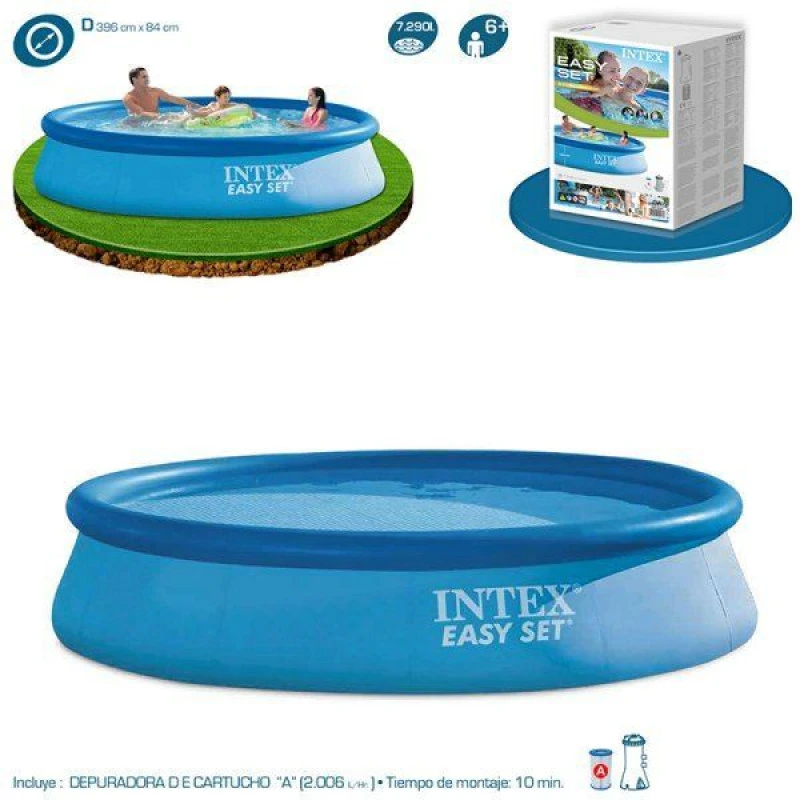 La piscina Easy Set de Intex es circular y tiene unas medidas de Ø396 x 84 cm.