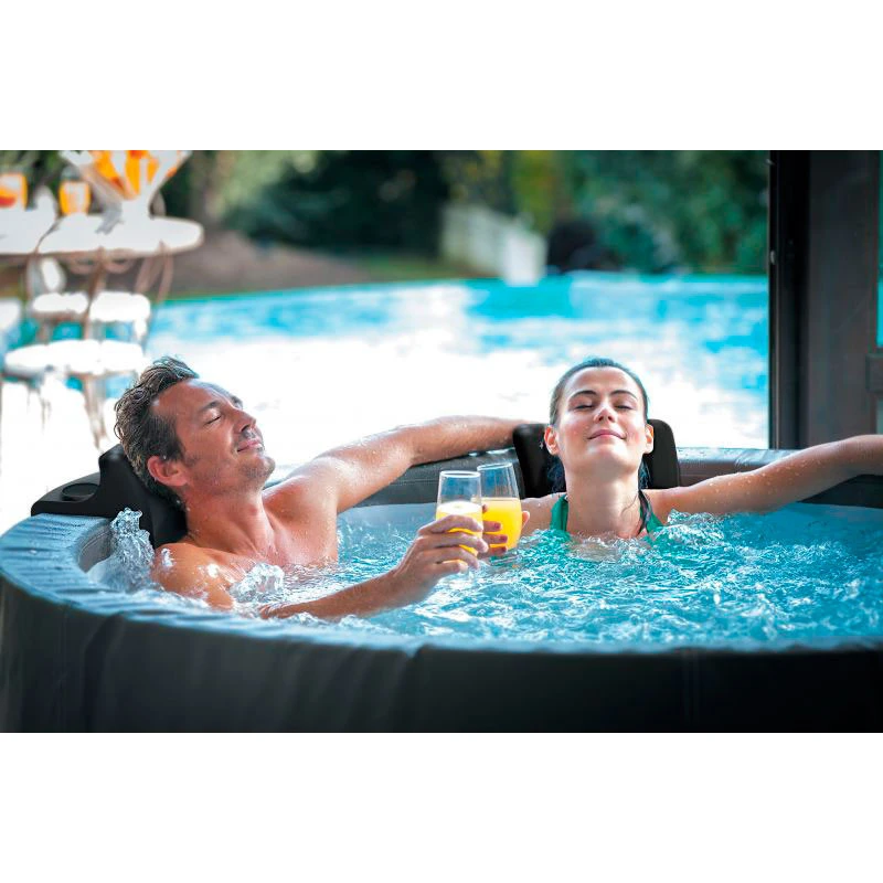 Les presentamos este accesorio tan sofisticado para Spa hinchable. Es la novedad en cuanto a relax y bienestar. Este fantástico lote está compuesto por 2 reposacabezas y portavasos (2 en 1).