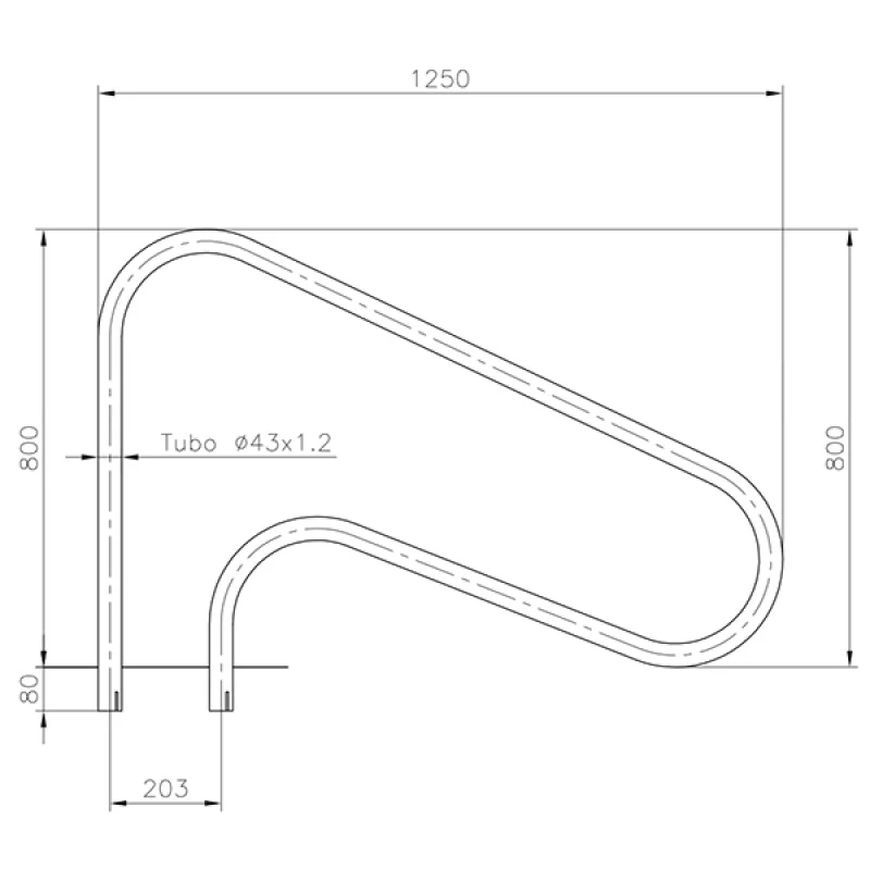 Pasamanos para acceso al agua de piscinas enterradas para su colocación en escaleras romanas.