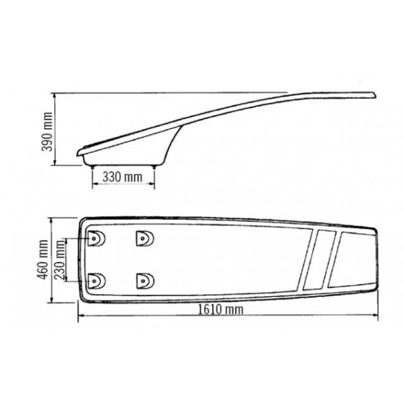 Fabricado en resina de poliéster y fibra de vidrio.
